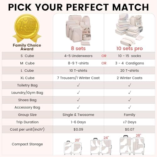 Adaptable Travel Organizers: No matter what type of luggage you use, our packing cubes fit seamlessly, helping you stay organized. Keep your clothes, toiletries, and accessories in order, ensuring everything is easy to find and ready to go when you need it