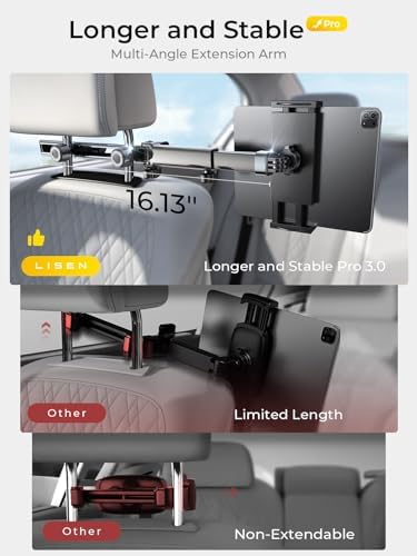 Car TV for back seat Ensures the tablet or screen is always at the optimal viewing angle for your toddler or baby.The arm can rotate and tilt in three axes (up/down, left/right, and forward/backward), allowing for perfect screen positioning no matter the child’s height or seating position