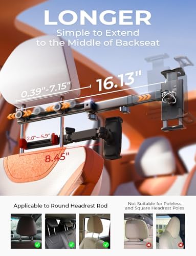 Tri-Axis Adjustability Upgraded Longer and More Solid: Perfect for: Busy moms who need a reliable, all-in-one solution for car travel with young kids road trip essentials. multi-purpose use (car seat, organizer, entertainment system) makes these features a smart investment for families on the go