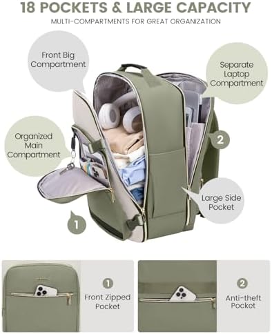 【Versatile & Airline-Approved】Sized at 18 × 14 × 8 inches, this carry-on backpack fits perfectly under the seat or in the overhead bin. Approved by Spirit, Frontier, JetBlue, and other budget airlines, it’s the ideal personal item for hassle-free air travel.
