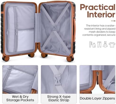 Hardshell Suitcase : 20inch Carry on luggage is crafted from Polycarbonate (PC) exterior offers extreme durability with a texture that reduces the visibility of scratches. Details such as the ergonomic 3-level retractable easy-grip top handle, and the double soft rubber carry handles bring maximum comfort and an easy carrying experience.